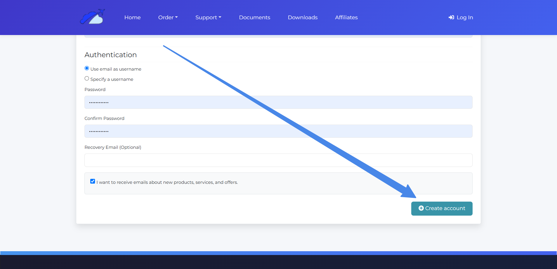 Step5- Billing Info অর্থাৎ First name, Last name, Phone Number, Address, E-mail, etc পূরণ করবেন সঠিকভাবে। এরপর “Create Account” বাটনে ক্লিক করবেন।