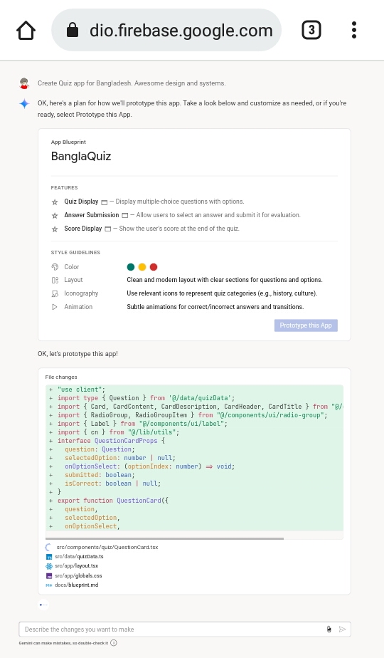 শুধু এটি Simple prompt দিলাম, এখন দেখুন কেমন অ্যাপ তৈরি করবে তা জন্য দেখাবে, চাইলে এডটি করতে পারবেন।