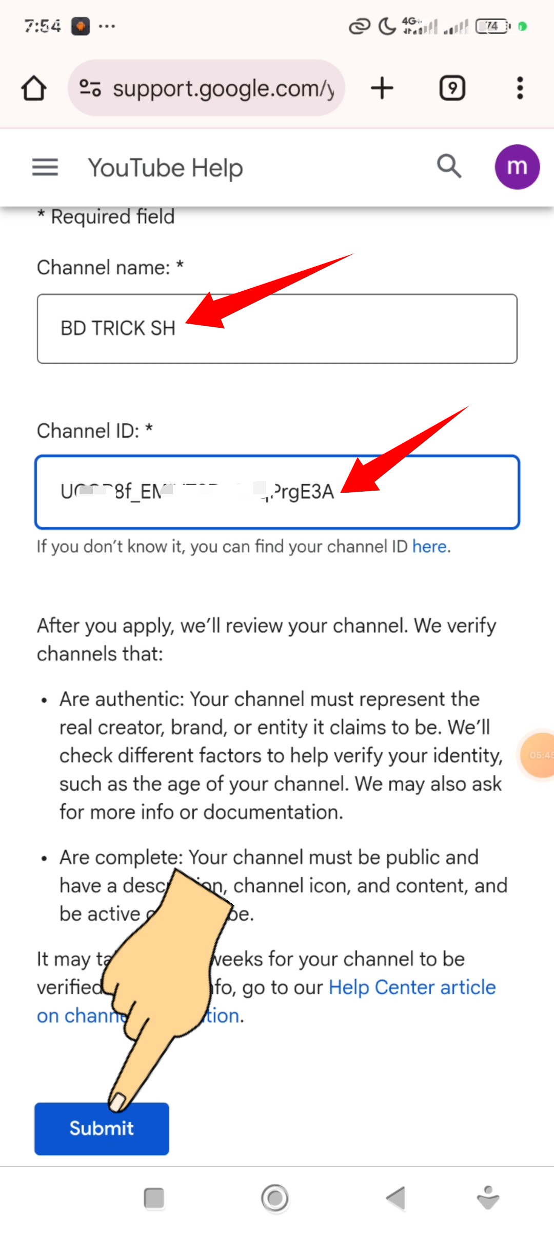 নিচের বক্সে কপি করে নিয়ে আসা চ্যানেল আইডি দিয়ে Submit করুন