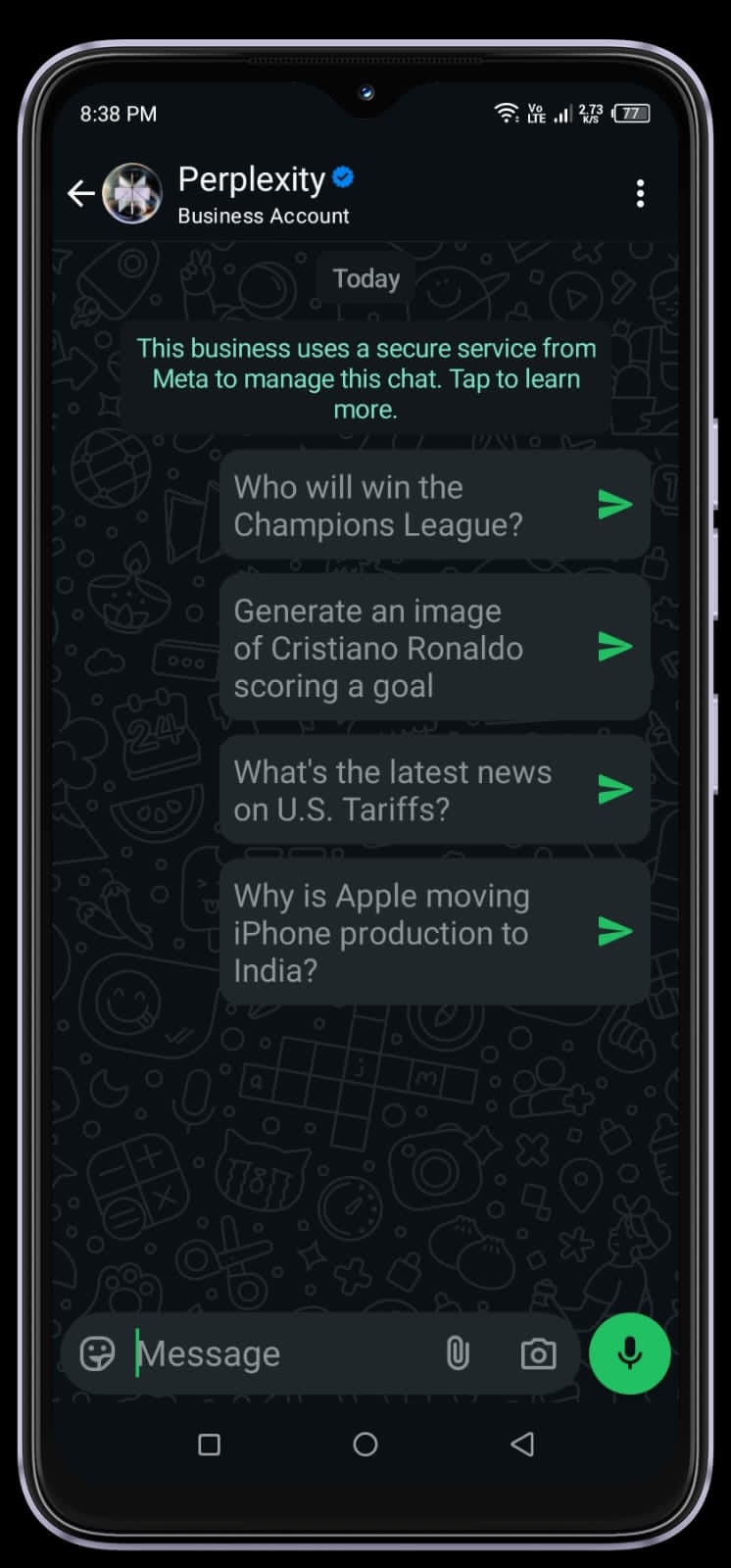 হ্যাঁ, আপনি ঠিকই শুনেছেন দেখেছেন Perplexity এখন Whatsapp এ চলে এসেছে। আর আজ আমরা যেই বটের কথা জানতে চলেছি সেটার নামই হচ্ছে Perplexity ।
