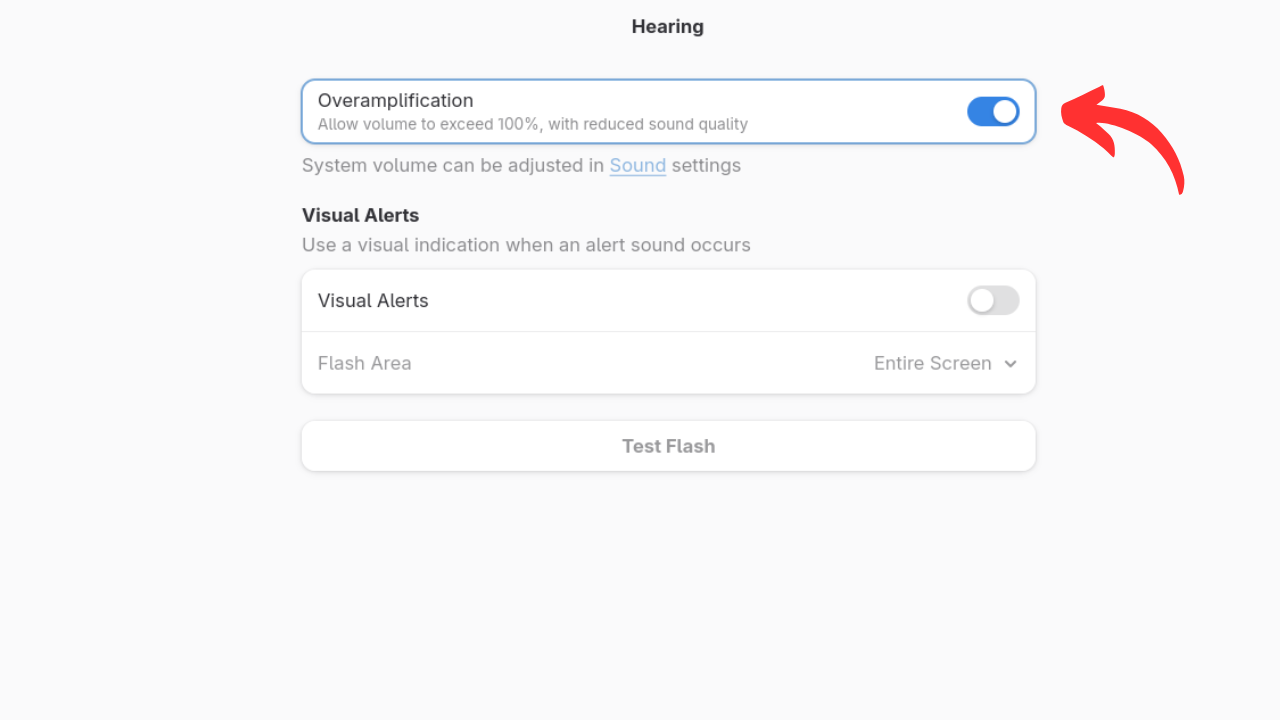 এই সমস্যা সমাধান করতে Accessibility > Hearing > Overamplification অপশন যোগ করা হয়েছে যাতে সাউন্ড ঠিকমতো শোনা যায়।