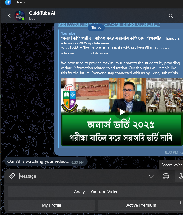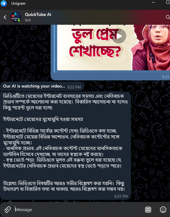 এআই বট লিংক: https://t.me/QuickTubeAi_bot