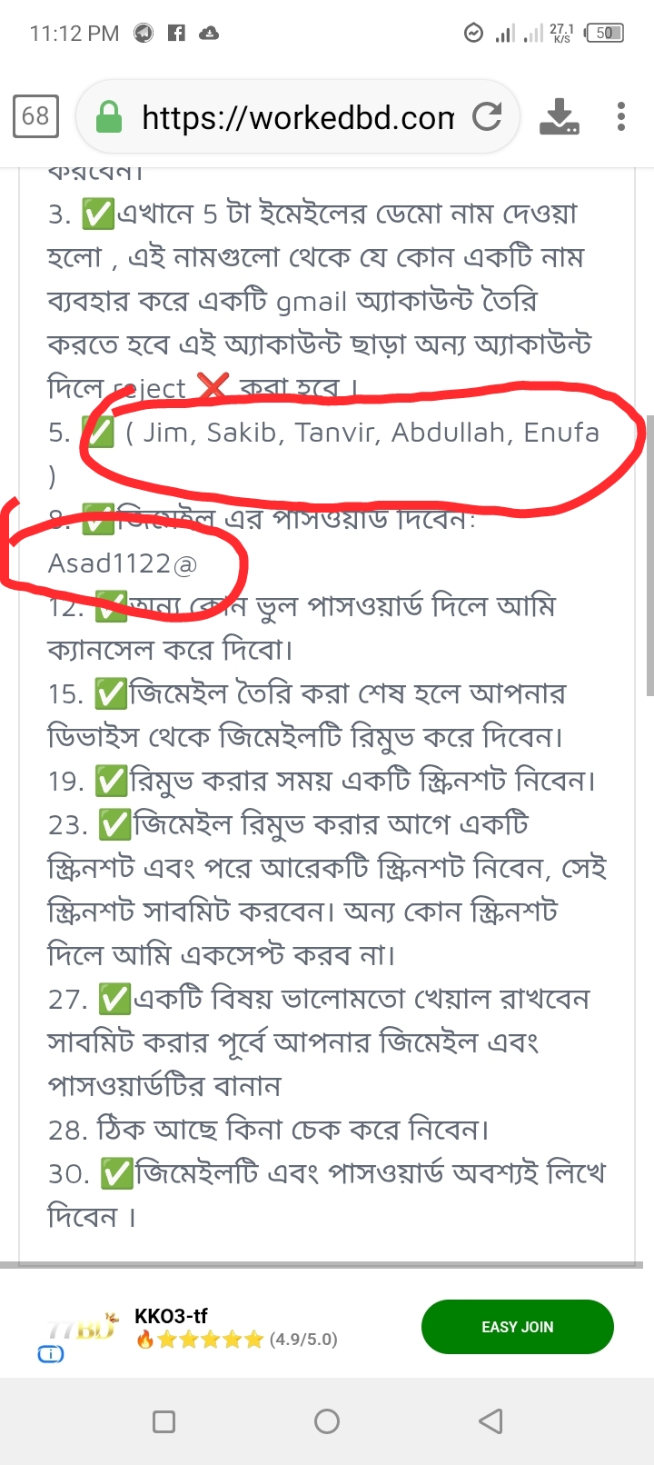 তো এখানে জিমেইল খুলতে বলছে ৫ টা নাম দিয়েছে এই নামের যেকোনো একটা দিয়ে খুলবেন এবং পাসওয়ার্ড যেটা বায়ার দিছে সেটাই দিবেন