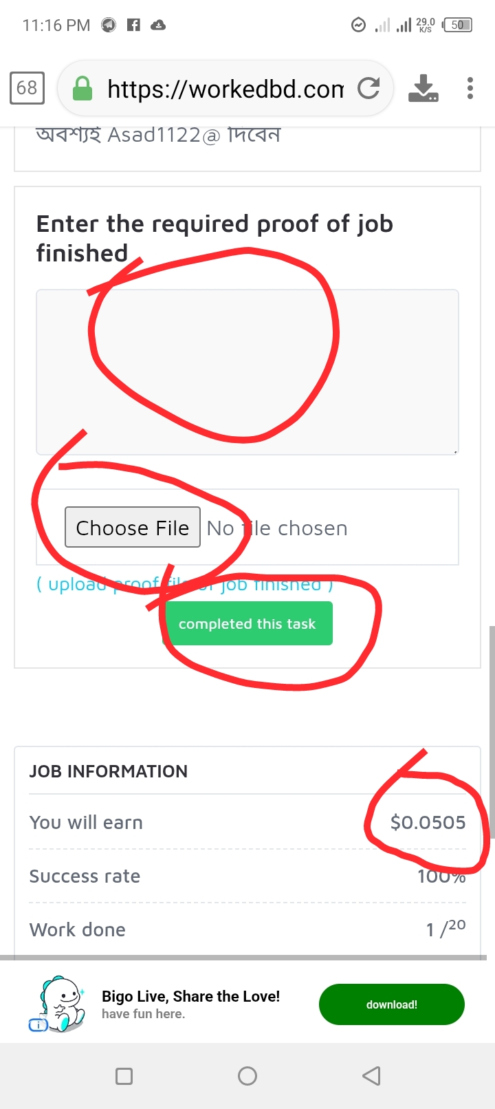 তারপর কাজ করার পড়ে সে কি প্রমান চাচ্ছে সেগুলো নিচে দিবেন তারপর কমপ্লিট বাটনে চাপ দিন
