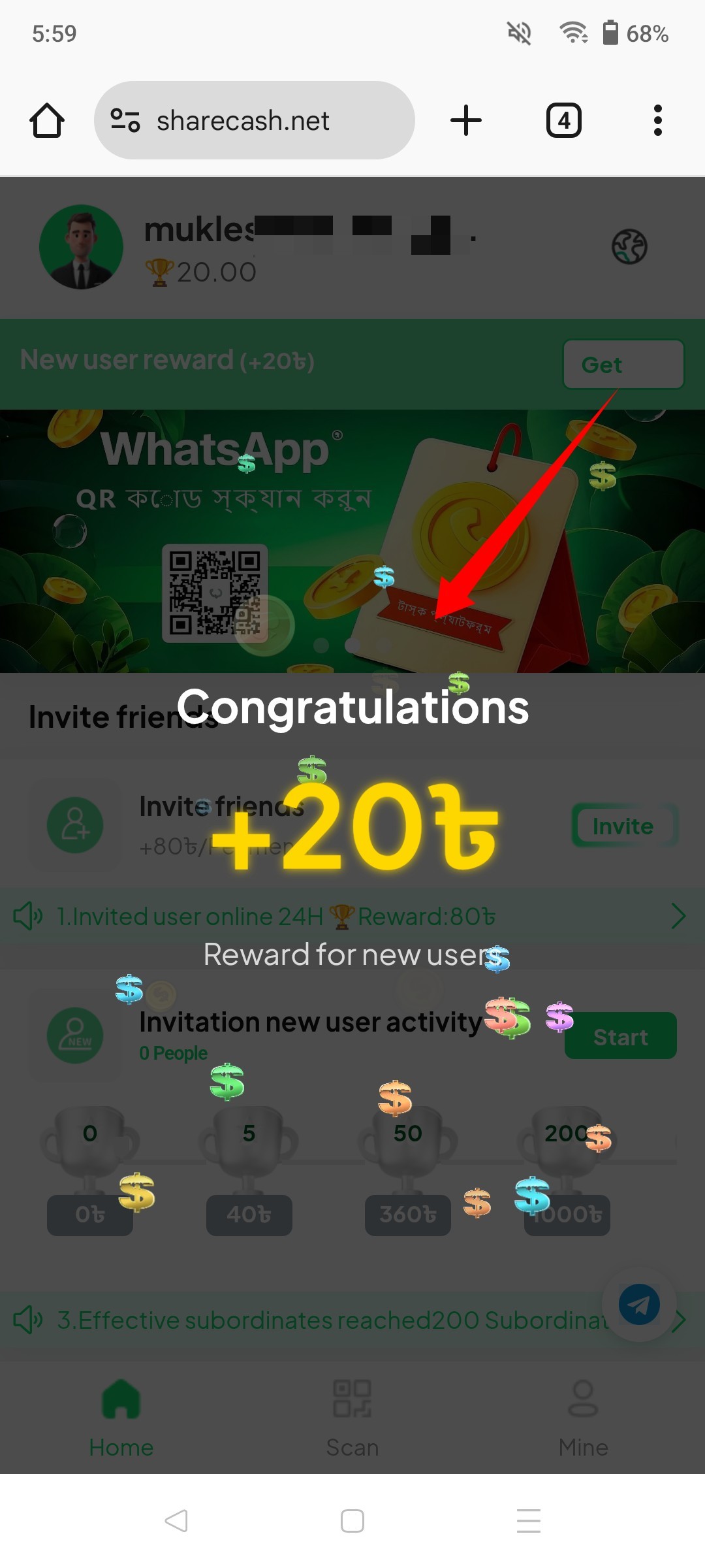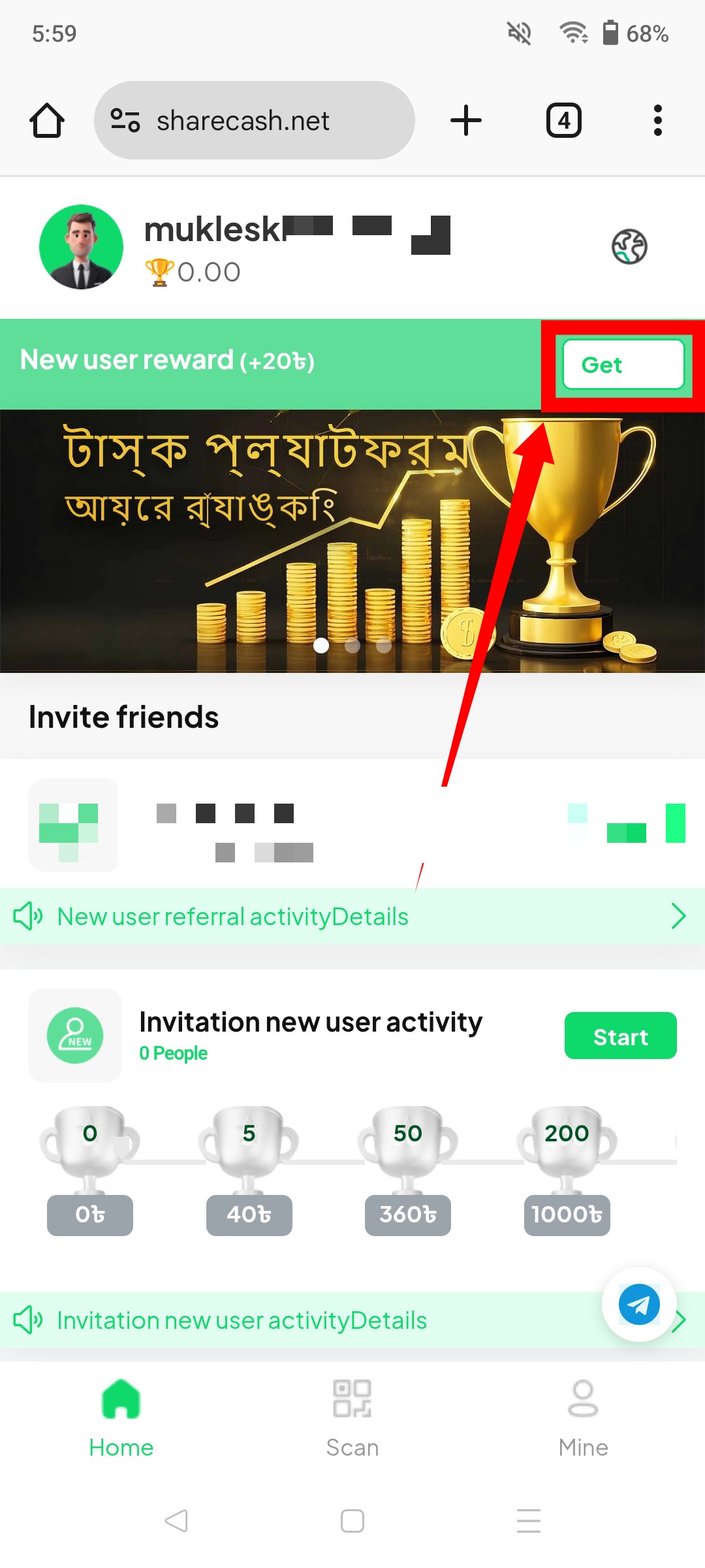 এবং ওপরে দেখতে পারবেন Get ক্লিক করুন ২০ টাকা ফ্রি দিতে পাবেন..!