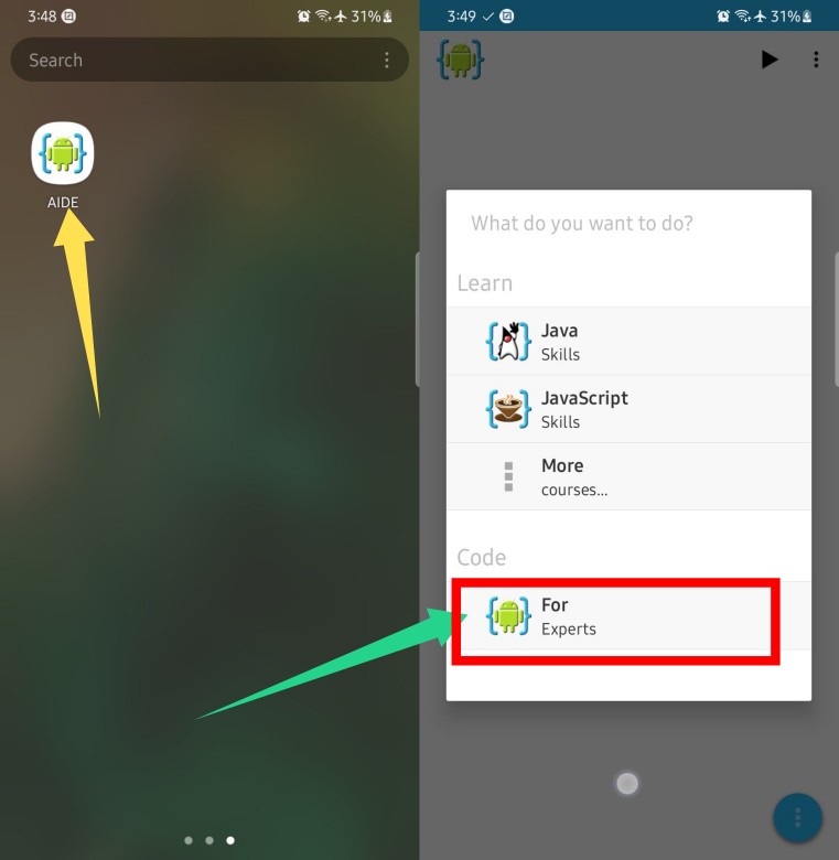 2. AIDE apk টি Open করে, Code For Experts সিলেক্ট করুন
