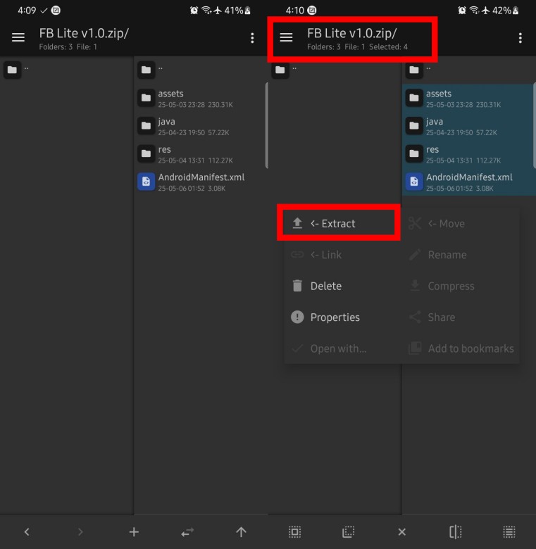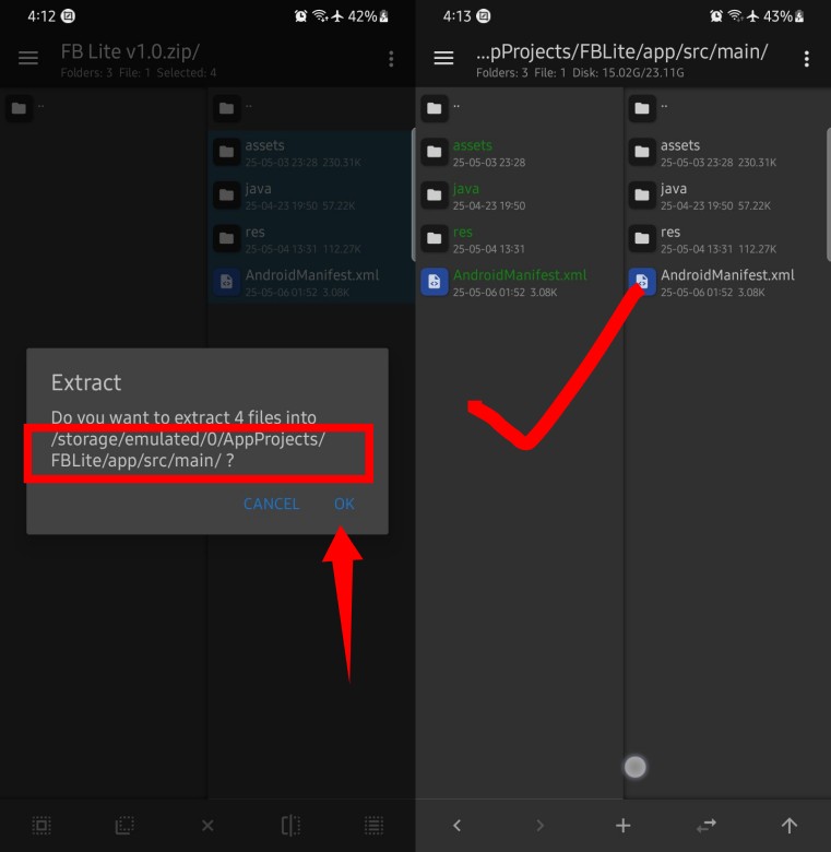 AppProjects > FBLite > app > src > main > এর ভিতর Extract ( বা Move) করুন