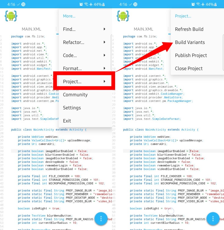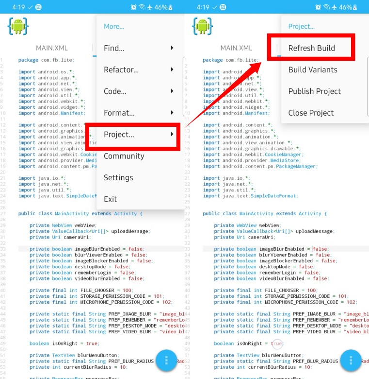 AppProjects > FBLite > app > src এই ফোল্ডারে যান