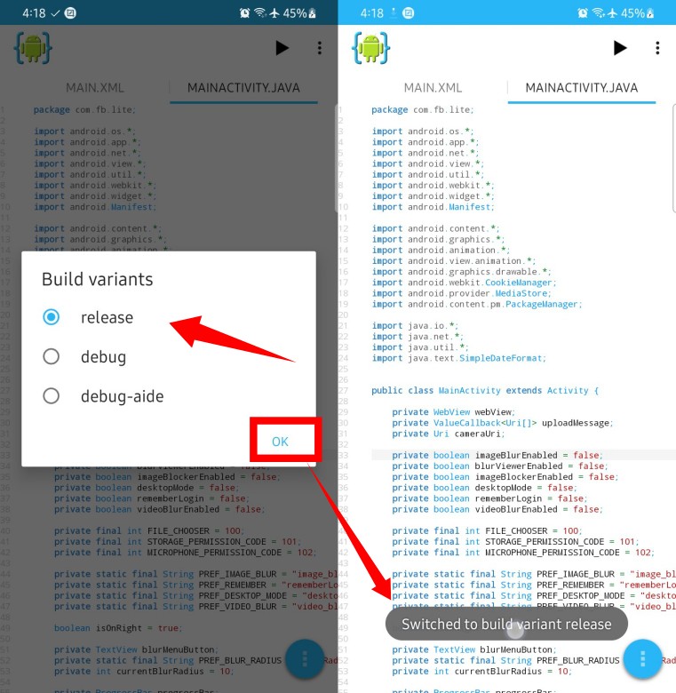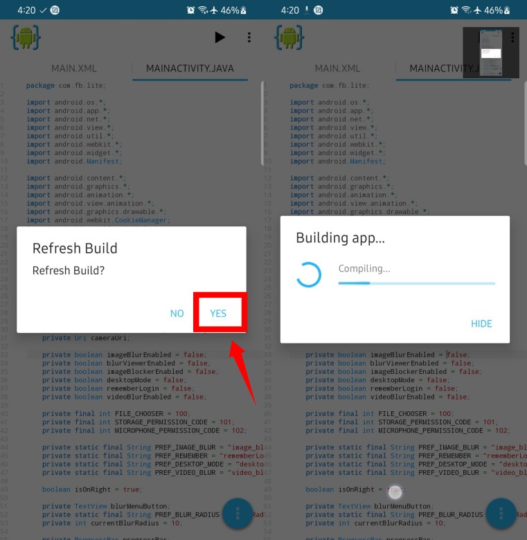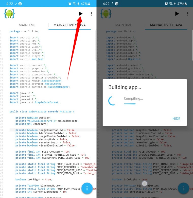 11. এখন, AIDE App এ যান। দেখবেন, কোড আপডেট হয়েছে