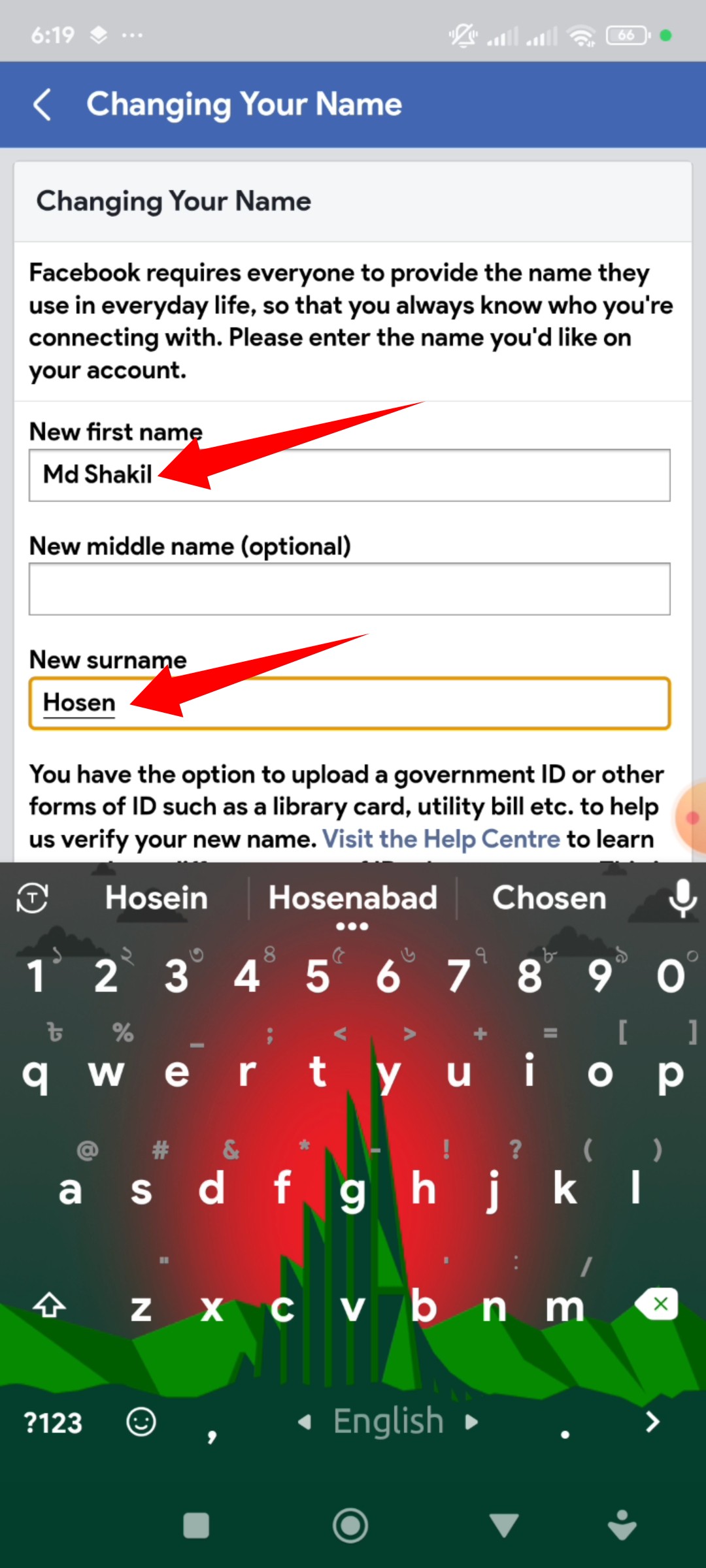 এবার এই দুই বক্সে আপনার পুরো নতুন যে নাম আইডিতে দিতে চান সেটা লিখে দিবেন।