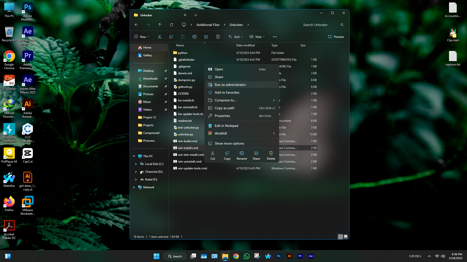 এরপর Unlocker ফোল্ডার ওপেন করে win-install.cmd ফাইলটি Run as administrator দিয়ে রান করুন ।