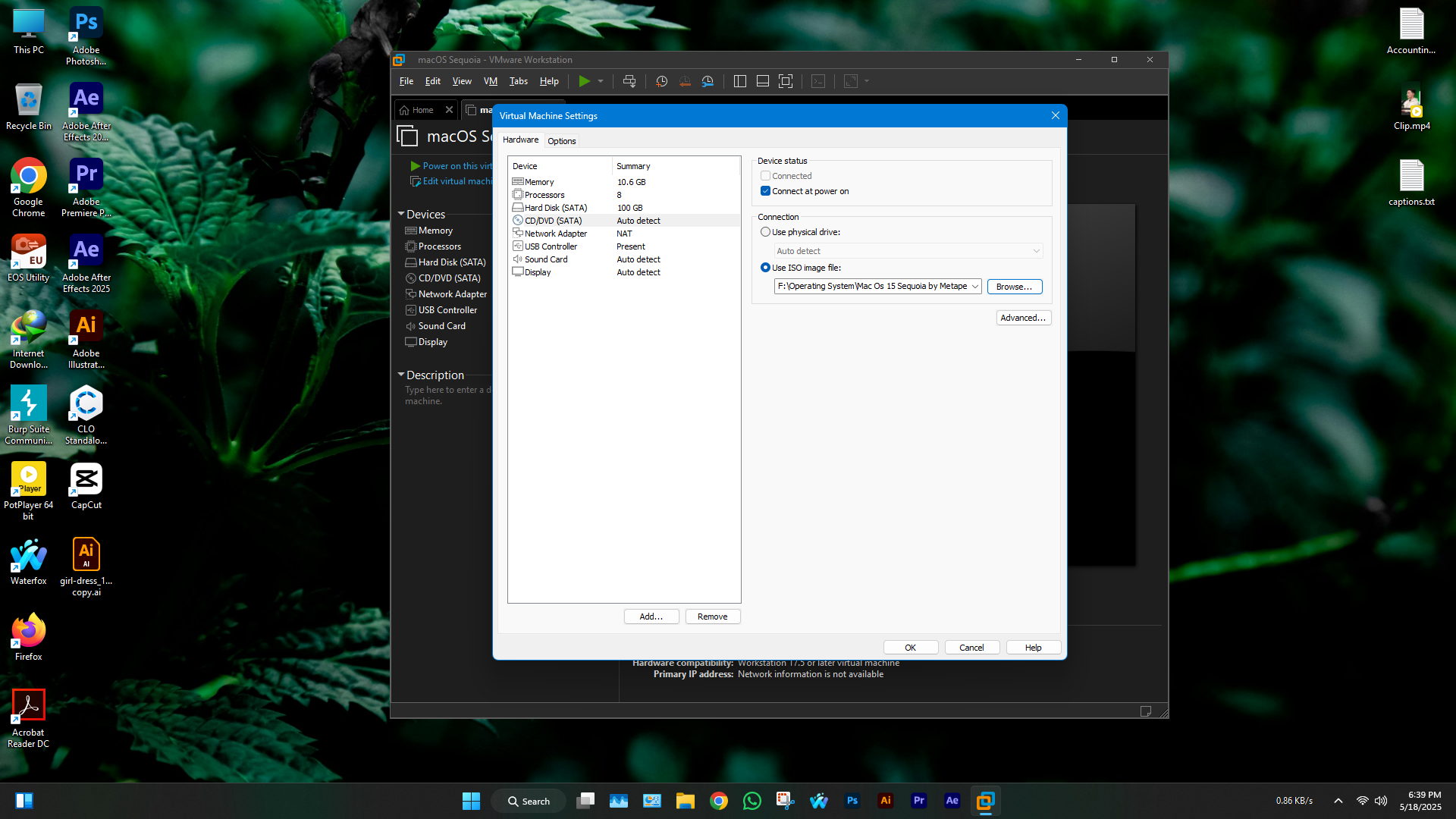CD/DVD থেকে browse এ ক্লিক করে darwin.iso ফাইল টা সিলেক্ট করুন । ম্যাক এর iso ফাইল আর প্রয়োজন নেই ।