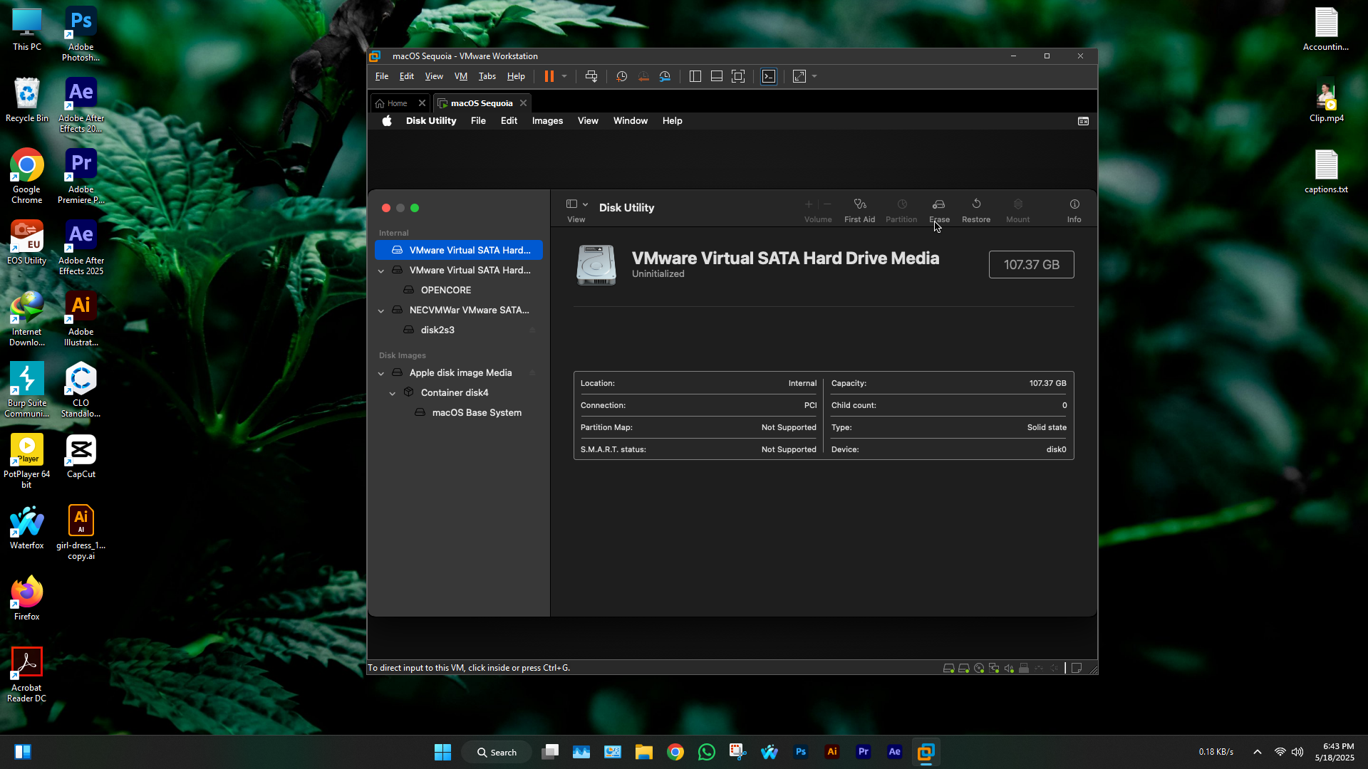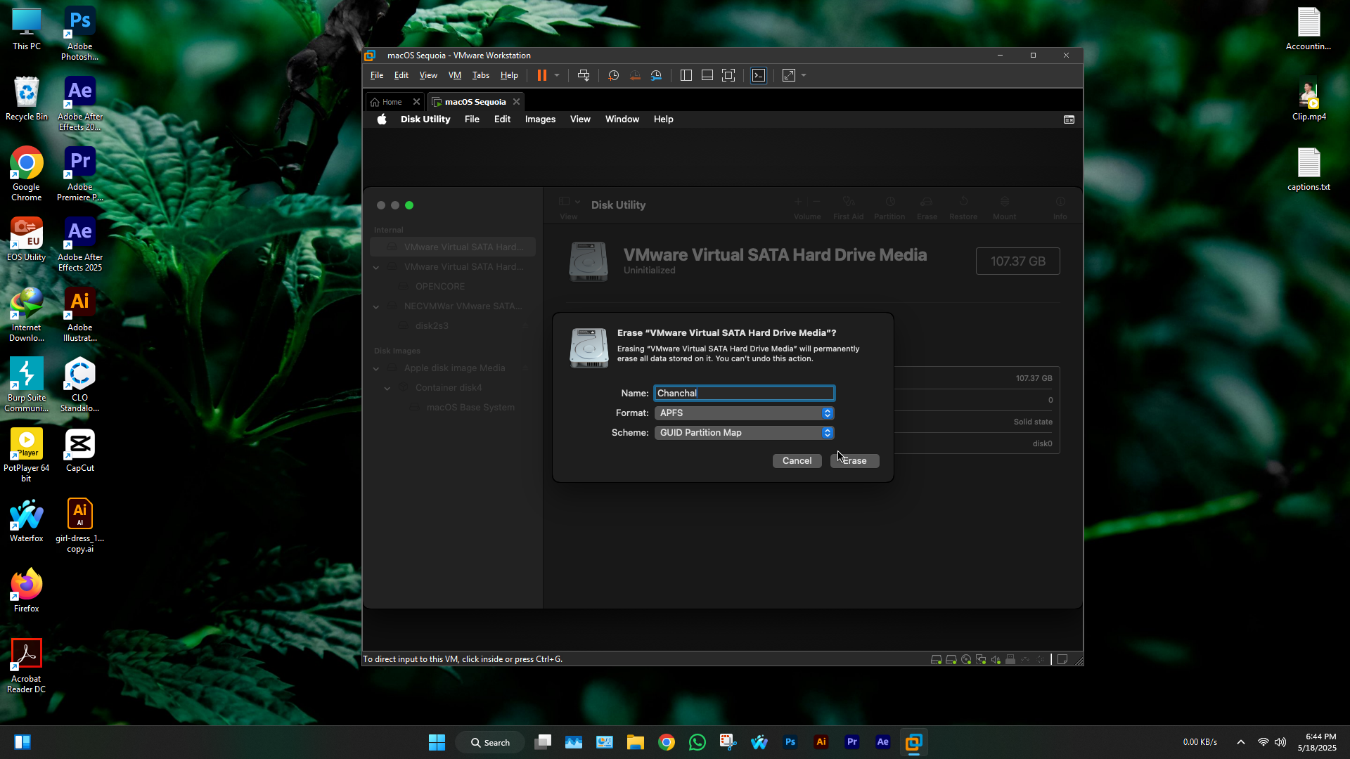 তারপর যেখানে ইন্সটল করবেন , অর্থাৎ আগের বানানো ১০০ জিবি হার্ড ডিস্ক , সেটি সিলেক্ট করে Erase এ ক্লিক করুন ।