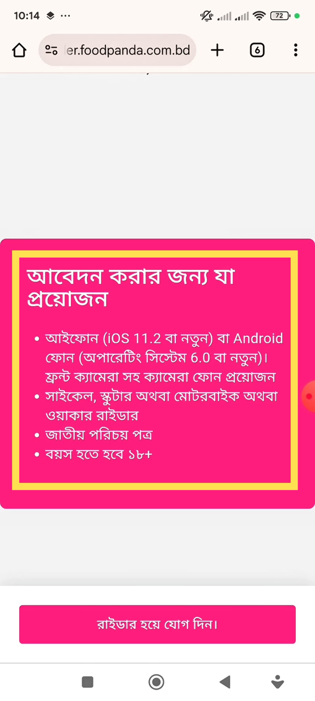 আশাকরি সবাই ভালো আছেন। আমিও আল্লাহর রহমতে অনেক ভালো আছি। আর যারা নিয়মিত ট্রিকবিডির সাথে থাকেন তাদের ভালো থাকারই কথা। কেননা এখান থেকে আমরা প্রতিনিয়ত অনেক অজানা বিষয়গুলো জানতে ও শিখতে পারি। আজকের পোষ্টে আপনাদের দেখাবো যেভাবে আপনারা ফুডপান্ডা রাইডার বা ডেলিভারি ম্যান হওয়ার জন্য আবেদন করবেন। আবেদন করার মাধ্যমে ফুডপান্ডা রাইডার হওয়ার মাধ্যমে প্রতিমাসে রয়েছে ২৫০০০ টাকা পর্যন্ত ইনকামের সুযোগ।