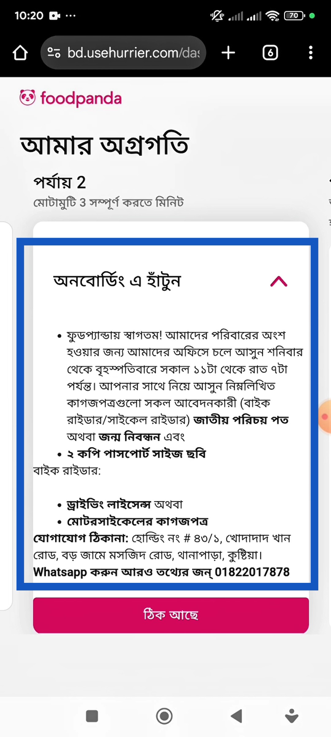 সর্বশেষ কিছুদিন আপনাকে ওয়েটিং রেখে অবশেষে আপনাকে একটা আইডি দেওয়া হবে যার মাধ্যমে ফুডপান্ডায় কাজ শুরু করতে পারবেন।