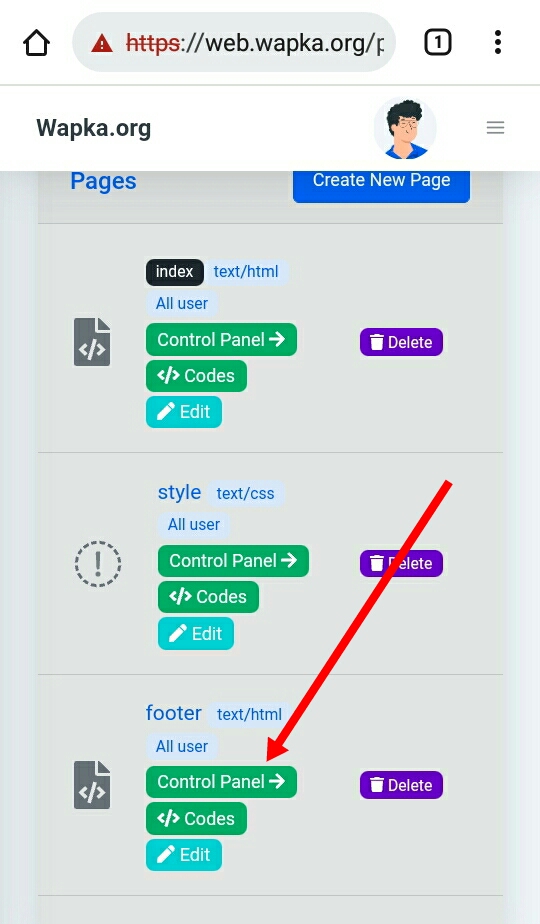 এই যে পেজটি তৈরি করলেন সেটির Control panel এ ক্লিক করুন!
