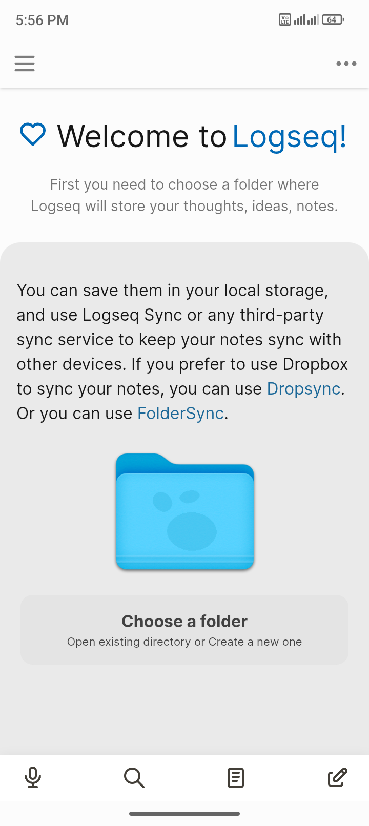 এবার Choose a Folder থেকে একটি ফোল্ডার সিলেক্ট করে নিন। এক্ষেত্রে আমি এমন একটি ফোল্ডার /storage/emulated/0/Documents/Logseq/Experimental সিলেক্ট করে নিলাম। এখানে ফোল্ডার এর নাম টি গ্রাফ নাম হিসেবে কাজ করবে। যেমন আমার গ্রাফ এর নাম Experimental।