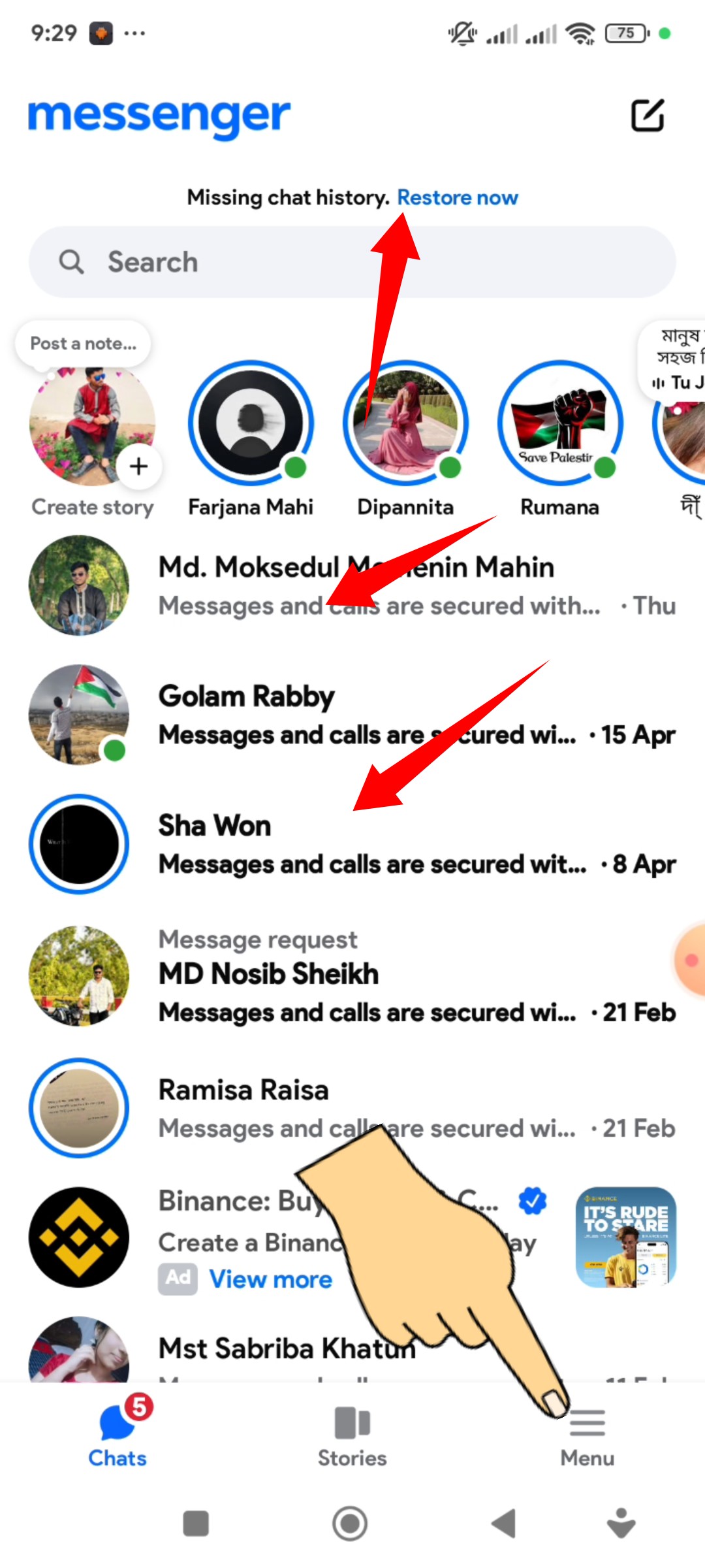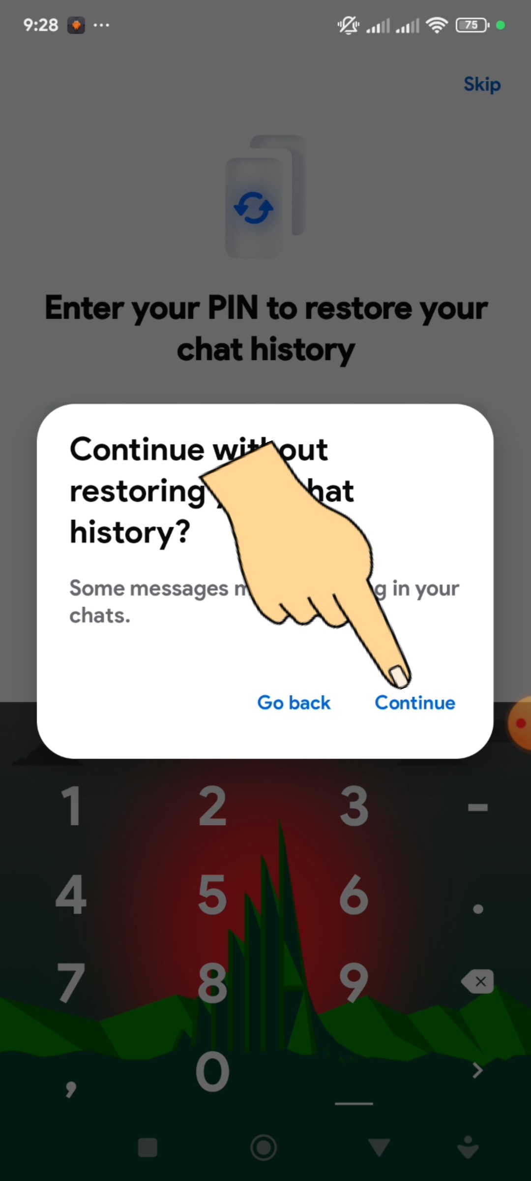 দেখুন আগের চ্যাট নেই এবং ওপরে Missing Chat Restore করার জন্য বলা হচ্ছে যেহেতু পিন জানেন না তাই Restore করতে পারবেন না।
